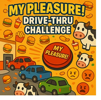Welcome to "My Pleasure!™ Drive-Thru Challenge" A parody-powered arcade game where speed, accuracy, and southern hospitality collide. You're the drive-thru dispatcher serving emoji meals, dodging cows, and racing customers to say "My Pleasure!" before they do. Every paid meal supports gig drivers and community joy. Every free meal? Well... bless your heart.